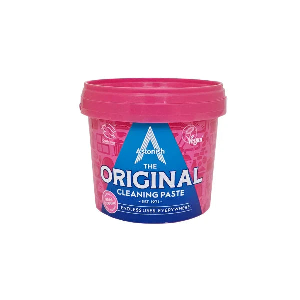 Introducing Astonish The Original Cleaning Paste - the powerful and versatile cleaning solution. Made with 100% biodegradable ingredients, this cleaning paste effectively removes dirt, grease, and stains from a variety of surfaces including stainless steel, ceramic, and more. Get a thorough clean without harsh chemicals or harmful additives.